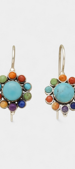 Créoles multicolores avec accents de turquoise