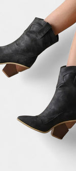 Le Botin Western fusionne tradition et style moderne avec un design aux lignes épurées et un caractère authentique. Confectionné en cuir souple, il intègre une pointe effilée et un talon bloc avec finition en bois qui apportent une élégance intemporelle et un soutien fiable. Sa semelle intérieure rembourrée et sa semelle flexible garantissent un confort sans effort, que ce soit de jour ou de nuit.