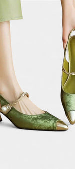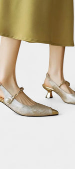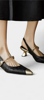 Déclaration de grâce à chaque pas : les Molette Mary Janes célèbrent la féminité avec des détails fins et une ambiance luxueuse. La texture florale de leur finition se marie à des accents dorés qui apportent de la distinction, tandis que la bande torsadée avec perle brille comme un bijou portable. Le talon kitten courbé élève subtilement, créant un équilibre parfait entre style et confort.