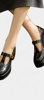 • Bride en T avec plateforme qui ajoute un charme rétro avec un soutien sûr