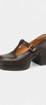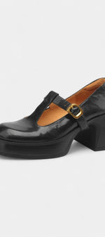 Ciala Mary Janes à Plateforme en Cuir Fait Main et Talon Carré