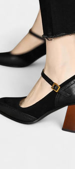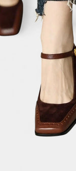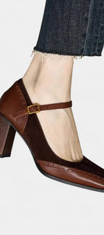 Le charme vintage se marie au style quotidien avec les Florence Mary Janes, un design qui fusionne raffinement rétro et confort moderne. Avec un bout carré, des détails brogue et un talon bloc stable, elles offrent une silhouette élégante et polyvalente. La fine sangle à la cheville avec fermeture à boucle ajoute une touche féminine et assure un ajustement confortable tout au long de la journée.