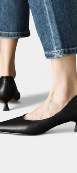 Élégance subtile et confort prolongé dans un design intemporel. Les Gerda Mary Janes offrent une silhouette raffinée avec un bout aiguisé, une finition douce et un profil épuré qui s'adapte sans effort à toutes les occasions. Leur talon bas et évasé procure une légère élévation avec une stabilité maximale, parfaits pour de longues journées sans renoncer au style.
