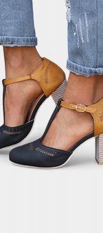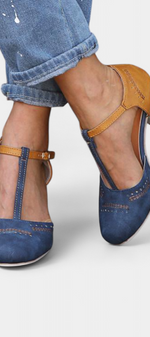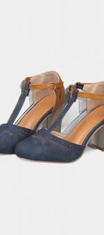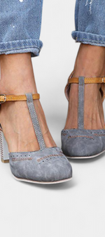 Un design raffiné qui allie féminité classique et confort moderne. Les talons Mira élèvent n'importe quelle tenue avec leur finition en daim doux, leur élégante bride en T et leur bout perforé qui ajoute du caractère sans effort. Le talon bloc offre une stabilité pour que vous marchiez avec confiance à chaque pas.