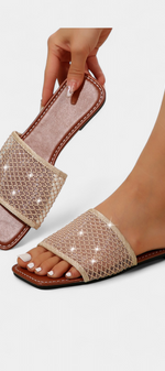 Un glamour décontracté avec une touche lumineuse et contemporaine. Les sandales Iva élèvent le look estival avec leur design en maille brillante et leur silhouette plate, alliant confort et style dans une proposition polyvalente et chic.