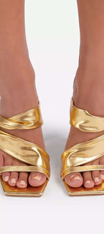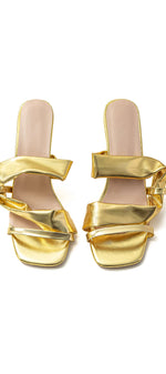 Sarah Sandales à talons hauts avec bout carré en métal froissé