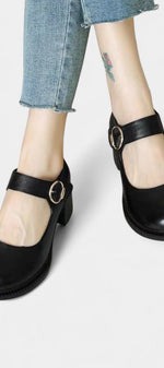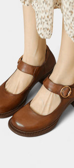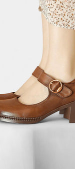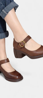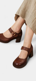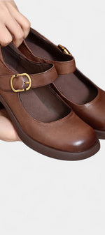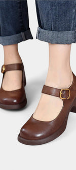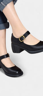 Agnes Mary Janes à Pointe Ronde et Talon Carré Classique