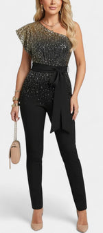Faites une déclaration sans robe. La combinaison Layla allie un éclat festif à un confort flatteur, présentant un design distinctif à une épaule et une coupe élégante. Que ce soit pour un rendez-vous, un événement nocturne ou une sortie stylée, c'est le glamour sans effort.