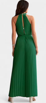 Minimalisme élégant avec une touche architecturale. La combinaison Patrizia allie des lignes épurées à des plis fluides qui tombent avec grâce, tandis que le col halter ajoute une touche sophistiquée et intemporelle pour des événements où le style parle de lui-même.