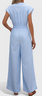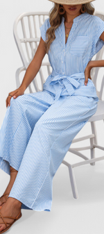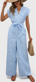 Entrez dans l'élégance quotidienne avec Inés, un mono à rayures léger conçu pour le confort et la confiance. Avec un décolleté en V flatteur, des manches courtes et un nœud à la taille, il allie structure et douceur. Les jambes larges et les poches pratiques en font un style facile à porter pour les journées ensoleillées et les plans spontanés.