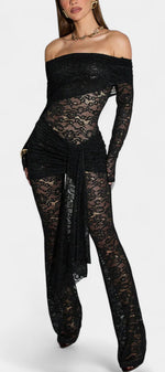 Un design qui équilibre sensualité et modernité avec un charme intemporel. Maristella met en valeur la silhouette avec un décolleté Bardot aux épaules dénudées et une coupe ajustée qui s'ouvre sur une jambe évasée stylisée. La superposition de la jupe mini froncée ajoute de la dimension et une touche sophistiquée, tandis que la dentelle transparente apporte une note de audace féminine.