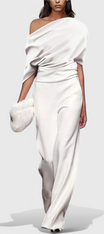 Élégant, flatteur et facile à porter—la combinaison Agatha est votre choix pour une élégance sans effort. Conçu pour célébrer votre silhouette tout en offrant du confort toute la journée, c'est le choix parfait pour des plans quotidiens ou des moments plus formels. Avec sa silhouette à jambe large et son tissu doux et fluide, Agatha apporte un style intemporel à votre garde-robe de printemps et d'été.