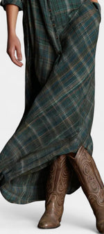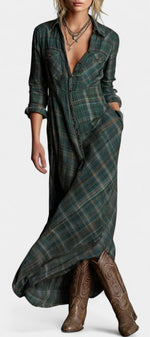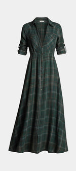 Amanita Robe Chemise Maxi à Carreaux Verts et Col à Revers Structuré