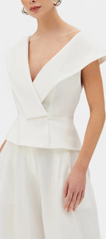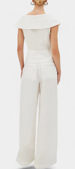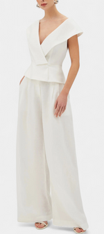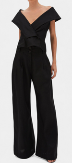 Design minimaliste avec une touche architecturale et sophistiquée. L'ensemble Hayden fusionne un top structuré avec un décolleté enveloppant et des épaules tombantes avec un pantalon palazzo à la chute élégante. Le résultat : une silhouette moderne, fluide et résolument raffinée. Parfait pour se démarquer lors d'événements urbains, de cocktails ou de célébrations avec un style propre.