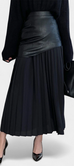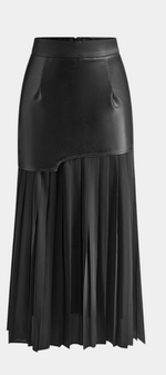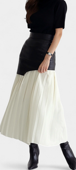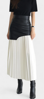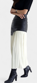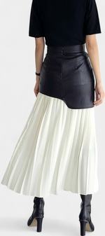 Une pièce qui équilibre force et féminité avec un design inattendu. La jupe Noelle combine la fluidité éthérée du chiffon avec la structure moderne du cuir synthétique dans un patchwork sophistiqué. Sa coupe asymétrique crée un dynamisme visuel, tandis que le mouvement plissé ajoute légèreté et élégance. Parfaite pour celles qui recherchent un look distinctif alliant audace et raffinement.