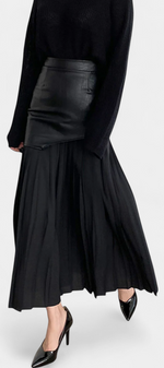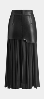 Noelle Jupe Asymétrique en Patchwork de Chiffon et Cuir Synthétique