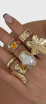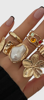 Une fusion de design fluide et de délicates embellissements, cette bague ouverte capture la beauté de la nature en mouvement. Avec ses courbes en métal fondu, accents de rhinestones et une douce perle simulée, elle apporte une qualité artistique et onirique à votre style quotidien.