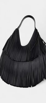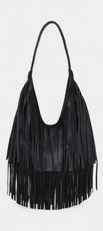 Libre et avec personnalité, apporte une touche bohème chic avec une finition noire intemporelle. Ses longues franges en couches génèrent mouvement et dynamisme, en faisant un accessoire polyvalent qui élève des looks urbains aux tenues de nuit avec une touche décontractée.