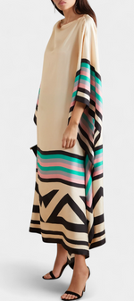 Elenora Caftan à Imprimé Géométrique et Coupe Chauve-Souris