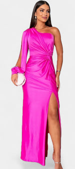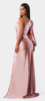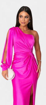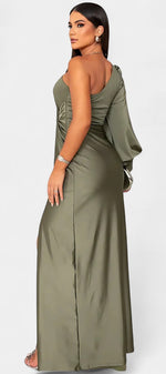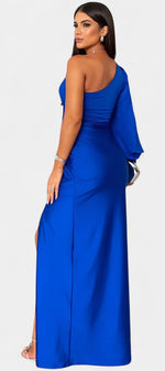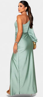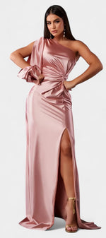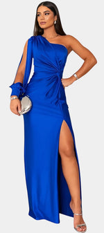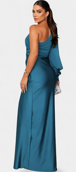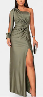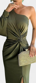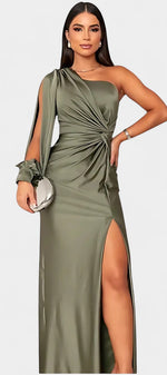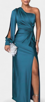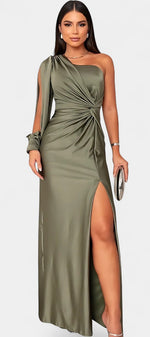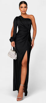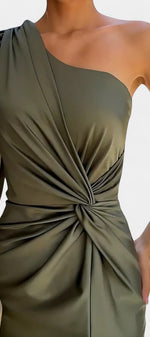 Enfilez-la et ressentez comment l'élégance vous enveloppe, transformant chaque pas en une déclaration de pure sophistication. Avec son décolleté asymétrique, son drapé sculpté et sa taille nouée, Charlotte se déplace avec fluidité pour mettre en valeur votre silhouette et laisser une empreinte à chaque occasion spéciale.