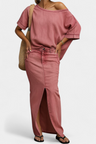 • Jupe longue avec ouverture frontale pour une silhouette allongée et dynamique