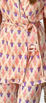 Une explosion de couleur et de caractère. L'ensemble Araceli combine une veste structurée avec des manches bouffantes et un pantalon évasé pour créer une silhouette audacieuse et féminine, parfaite pour se démarquer avec énergie en toute occasion.