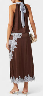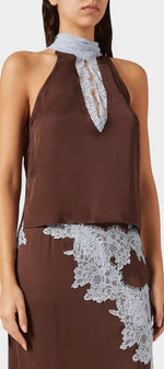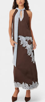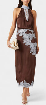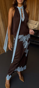 Une proposition raffinée qui fusionne sensualité et modernité. Elvira combine un top ajusté et une jupe coordonnée, tous deux rehaussés de panneaux en dentelle contrastée qui apportent texture et féminité. L'équilibre entre les tons crée une profondeur visuelle, tandis que la silhouette cintrée souligne la figure avec élégance. Une option polyvalente qui s'adapte aussi bien au jour qu'à la nuit avec une touche séduisante.