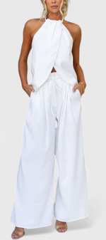 Ensemble en Lin Bernadina avec Top à Décolleté Avant et Pantalon à Jambes Amples