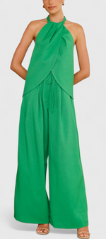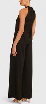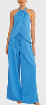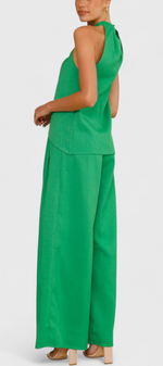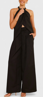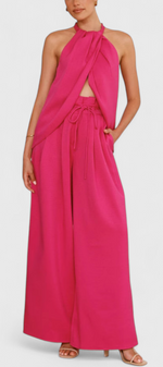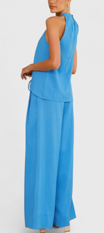 Fraîcheur structurée avec une touche décontractée et sophistiquée. L'ensemble Bernadina combine un top sans manches avec une ouverture frontale et un col haut avec un pantalon à jambes larges et un nœud à la taille. Son mélange de lin apporte une légèreté naturelle, idéale pour les climats chauds et les escapades stylées.