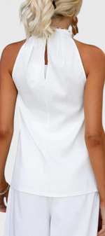 • Top sans manches avec col haut et ouverture centrale qui allonge visuellement