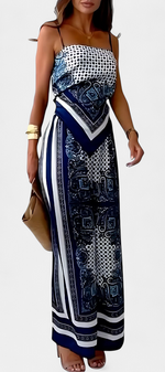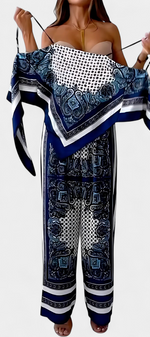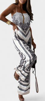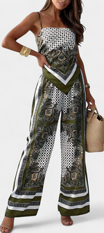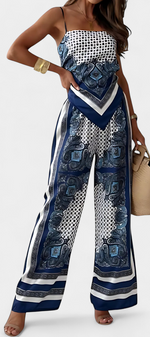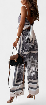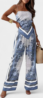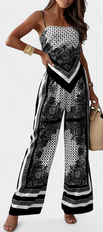 Faites tourner les têtes avec l'Ensemble de Foulard Paisley : un mélange léger d'imprimé audacieux et d'élégance décontractée. Avec son top bandeau à bretelles et son pantalon à jambes larges fluides, cet ensemble capture l'essence de la sophistication désinvolte pour des journées chaudes et des nuits inoubliables.