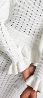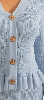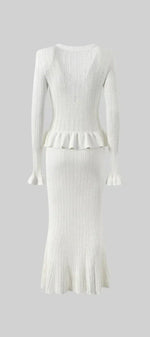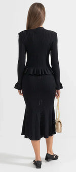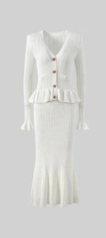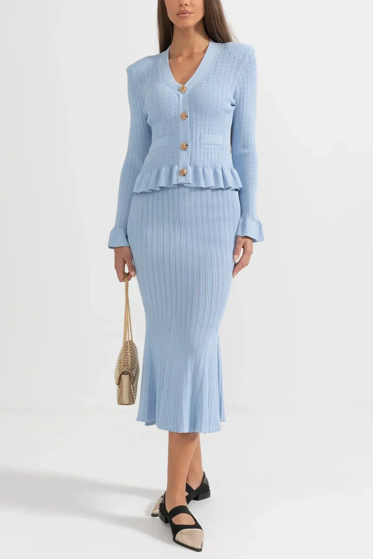 Prudence Ensemble en Maille avec Cardigan à Volants et Jupe Midi Évasée