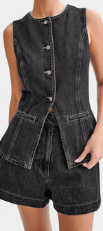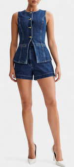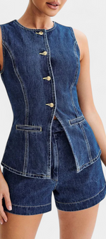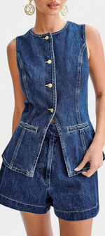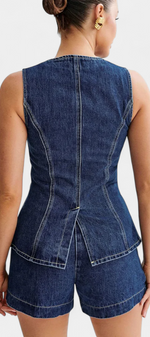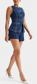 Raya Ensemble en Denim avec Gilet Sans Manches et Shorts Taille Haute