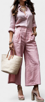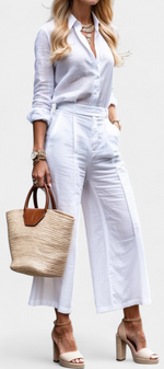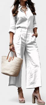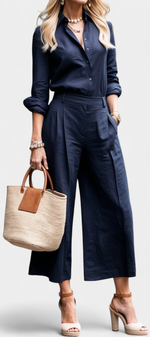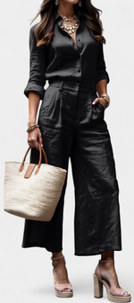 Sabina incarne la simplicité élégante et le confort en mouvement. Confectionné dans un tissu doux enrichi de spandex, cet ensemble offre une élasticité naturelle et une fluidité raffinée. La chemise ample tombe avec légèreté, tandis que le pantalon capri à jambe large crée une silhouette décontractée et équilibrée. Une tenue idéale pour conjuguer aisance et modernité au quotidien.