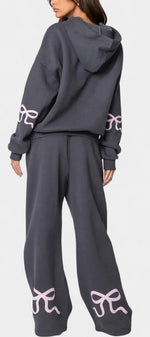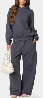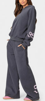 Moderne et polyvalent, l'ensemble Caleta redéfinit le confort avec un design décontracté qui ne sacrifie pas le style. Confectionné dans un tissu doux et accueillant, il combine une capuche, un nœud décoratif et des pantalons à coupe fluide pour un look à la fois décontracté et sophistiqué.