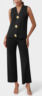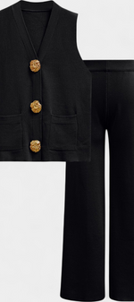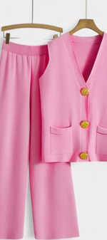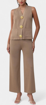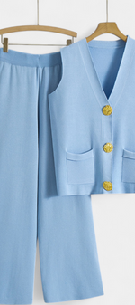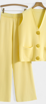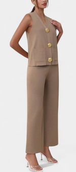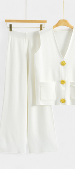 Jacey Ensemble Gilet en Tricot et Pantalon à Jambes Larges