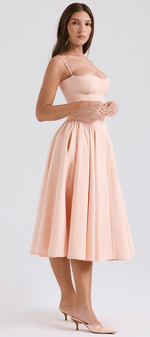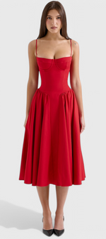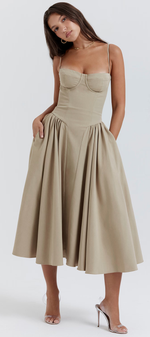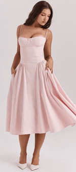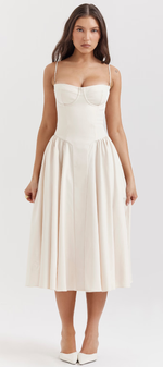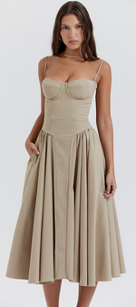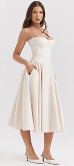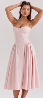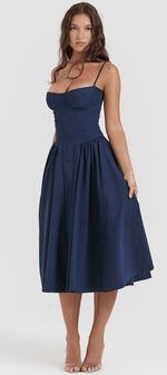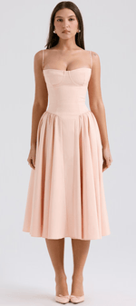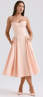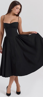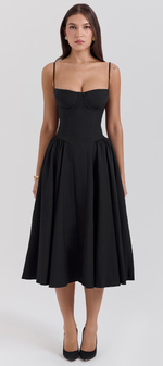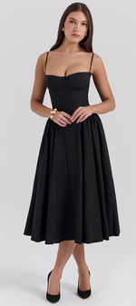 La définition de la confiance sereine, la robe Felicity sculpte et met en valeur avec une sophistication silencieuse. Avec sa silhouette inspirée des corsets, sa coupe sans manches et sa structure raffinée, elle allie l'élégance intemporelle à une touche moderne—parfaite pour des moments qui nécessitent impact et grâce.