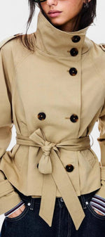 Roux Trench Court à Col Montant et Ceinture Amovible