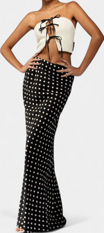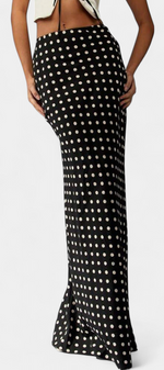Un mélange de féminité raffinée et de mouvement naturel. La jupe Olda se distingue par sa coupe élancée et son imprimé à pois, idéale pour un look sophistiqué sans effort.