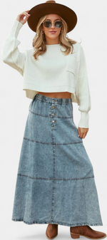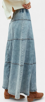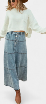 Décontractée, originale et avec une touche chic, Lorraine réinvente la jupe en denim avec caractère et mouvement. La coupe longue fluide, les coutures marquées et le détail en plume créent un équilibre entre le classique et l'inattendu, idéale pour des looks décontractés avec intention.