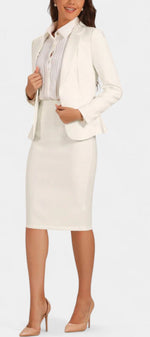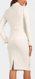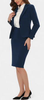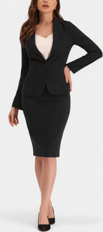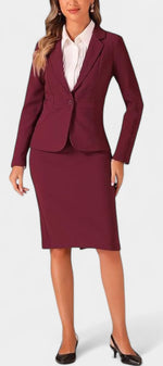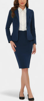 Un essentiel du vestiaire moderne alliant structure et féminité. L’ensemble Komoren présente un blazer à col à revers avec une coupe peplum flatteuse et une jupe crayon ajustée, créant une silhouette sophistiquée et harmonieuse. Conçu dans un tissu lisse et légèrement extensible, il offre confort et allure impeccable tout au long de la journée.