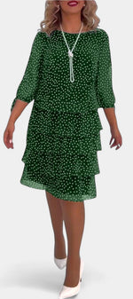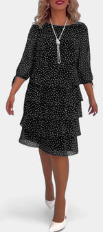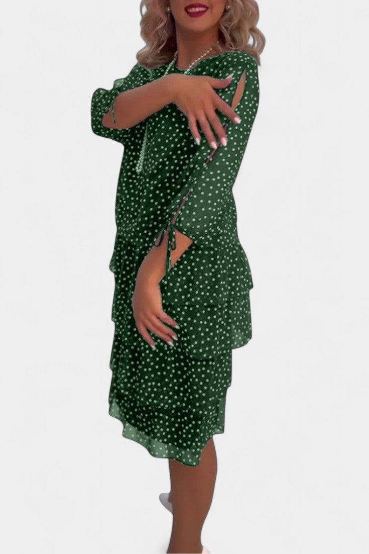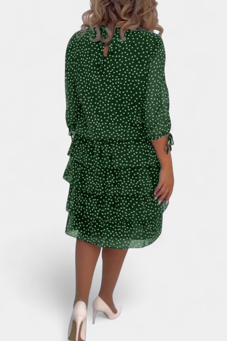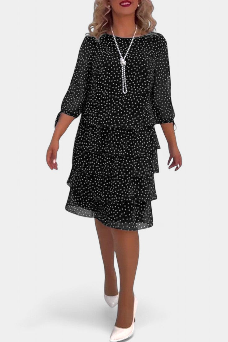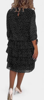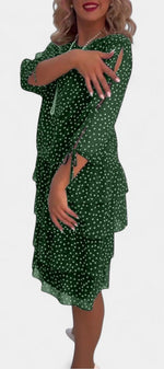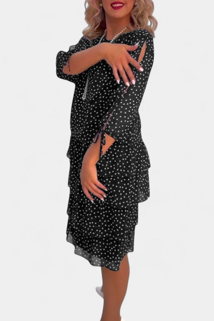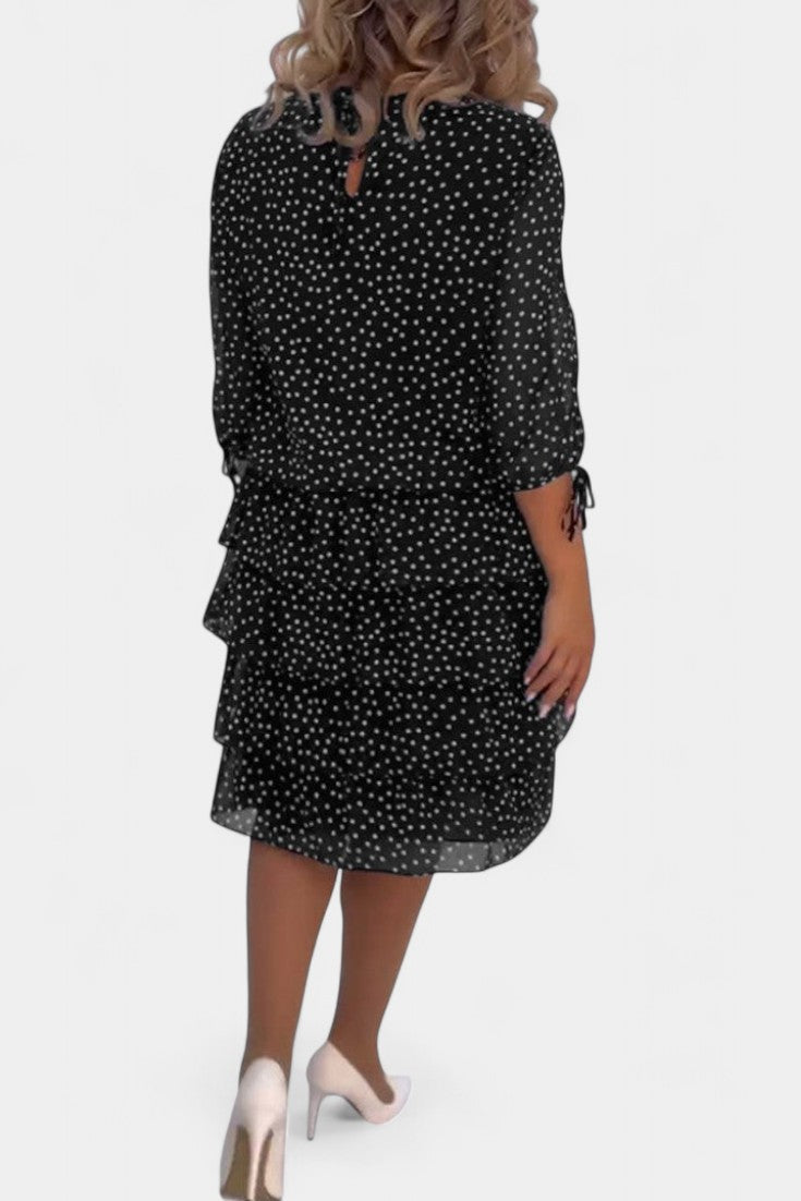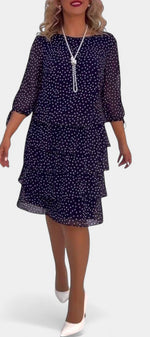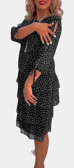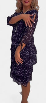 Une création intemporelle qui marie élégance et légèreté. La robe Lauren revisite le charme classique du motif à pois à travers une silhouette fluide et féminine. Son décolleté rond et sa taille subtilement plissée mettent en valeur la silhouette, tandis que le tissu léger offre un confort aérien pour toutes les occasions.