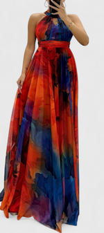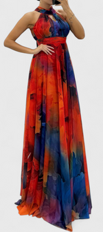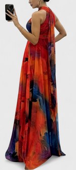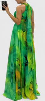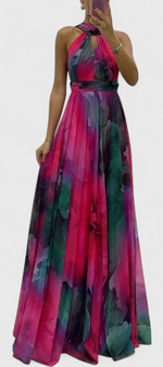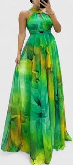 Caprice Robe Longue en Chiffon à Col Halter Fleuri