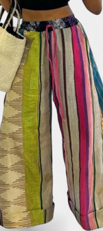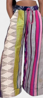 Décontractés mais stylés, les pantalons Claudine allient un imprimé rayé accrocheur à une silhouette ample et fluide. Leur cordon de couleur contrastante ajoute un détail moderne et fonctionnel, tandis que la coupe loose assure un confort à chaque mouvement. Conçus pour ceux qui recherchent un look décontracté avec une touche sophistiquée.