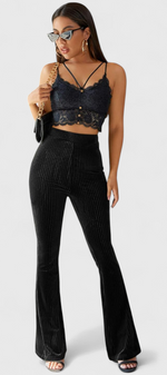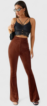 Un toucher vintage avec un style actuel—les pantalons Liset fusionnent la texture douce du velours avec une coupe évasée qui allonge et apporte du mouvement. Parfaits pour des looks décontractés ou plus raffinés, ils offrent une silhouette flatteuse et une polyvalence pour toute la journée.