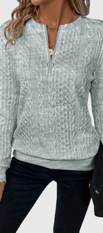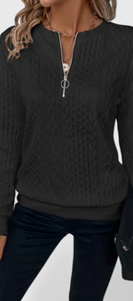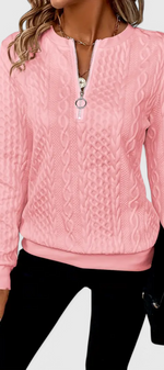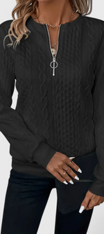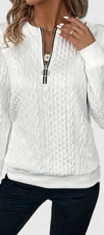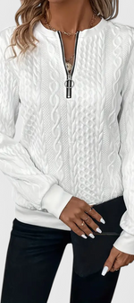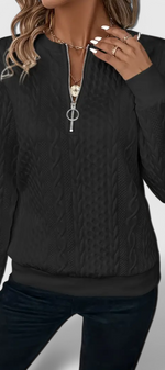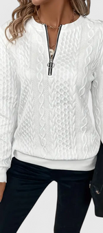 Moderne et polyvalent, le pull Zoey allie confort premium et design minimaliste. Son tissu en tricot luxueusement doux et le détail de la fermeture éclair polie en font un vêtement qui navigue sans effort entre le décontracté et l'élégant. Une pièce essentielle pour ceux qui recherchent un style raffiné et un confort quotidien.