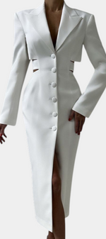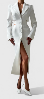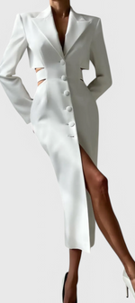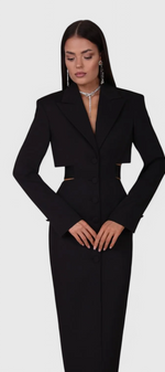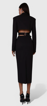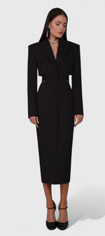 Puissante et sophistiquée, la robe Bernice réinvente la couture classique avec une touche féminine et audacieuse. Son col à revers aiguisé et sa silhouette ajustée s’associent à des découpes stratégiques à la taille et un dos nu pour créer une pièce qui irradie confiance et style. Confectionnée dans un tissu légèrement élastique, elle offre un ajustement flatteur et confortable pour les occasions où vous souhaitez vous démarquer.