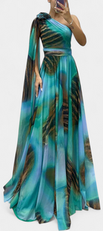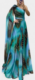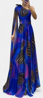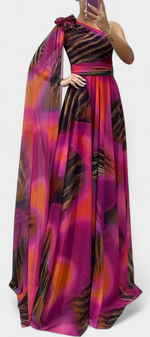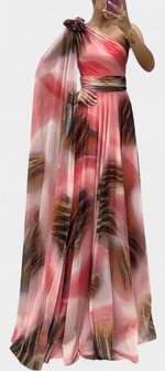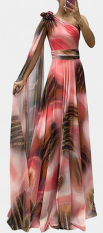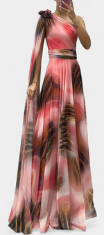 Romantique et sophistiqué, la robe Cedara apporte une touche sculpturale et féminine grâce à son décolleté à une épaule et sa manche drapée. Le délicat appliqué floral élève le design, tandis que la silhouette maxi fluide se déplace avec grâce, créant une présence inoubliable lors de tout événement. Confectionnée dans un tissu doux et élégant, elle équilibre confort et glamour raffiné.