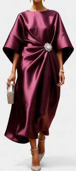 Ubelia Robe Satinée à Coupe A et Détails Froncés