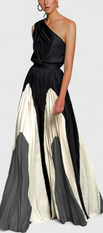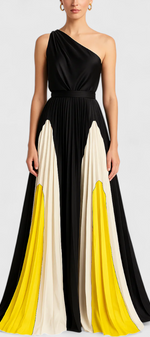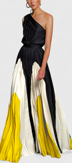 Une silhouette sophistiquée pour vos nuits les plus mémorables. La robe Antía éblouit avec son design off-shoulder et son jeu de couleurs soigneusement combinées. Avec un col en angle qui encadre avec élégance, une jupe ample qui flotte gracieusement et un ajustement confortable, c'est le choix parfait pour des mariages, des célébrations ou des événements estivaux avec style.